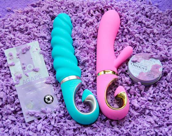Теперь о личных впечатлениях. Я уже была знакома с продукцией от компании Gvibe. В моей коллекции есть Gjack просто потрясающего мятного цвета. И он великолепен, но без клиторальной стимуляции. Поэтому попробовать Grabbit мне было интересно вдвойне. Тем более, что от коллег и клиентов я слышала весьма разные отзывы. Сразу скажу, что Grabbit великолепен во многих отношениях, и очень мне понравился, но не очень подошел. Мягкость материала игрушки лучше один раз почувствовать, чем сто раз о нем услышать. Вибрация великолепна. Но то ли я не привыкла к такой всесторонней клиторальной стимуляции, которую обеспечивают целых два ушка, то ли мне просто не подходит такой вид стимуляции. Она немного сбивала меня в процессе. А вот когда я чуть-чуть повернула игрушку, положив одно ушко на центр клитора, тогда все отлично получилось. Наверное, лично мне хватило бы одного ушка. Еще раз повторюсь, что это исключительно моя особенность, а о своей вы не узнаете, пока не попробуете.